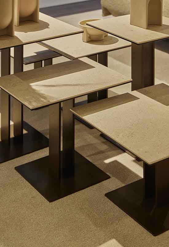 Der Beistelltisch Joplin reiht sich in die Kollektion der von Sergio Rochas entworfenen Tische ein, die sich an der Tischbasis und den 10 mm starken Blechen orientieren. Ein runder Metallsockel (Ø30 cm) und ein quadratischer Metallsockel (30×30 cm), die in drei verschiedenen Höhen (H33/H40/H55) erhältlich sind, bilden diese Beistelltischkollektion. Die Keramikplatte ist in 8 Größen erhältlich.